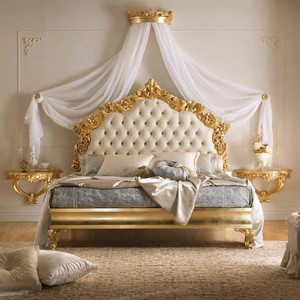 マスターベッドルームダブルベッドヨーロピアンスタイル無垢材プリンセスベッドインターネットセレブフレーム彫刻レザーベッドフレンチ金箔ウェディングベッド寝室大型ベッド