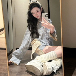 两件套装新款秋季条纹美式衬衫宽松衬衣复古短裤子休闲甜美辣妹潮