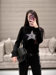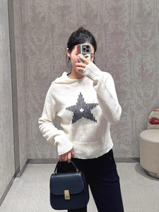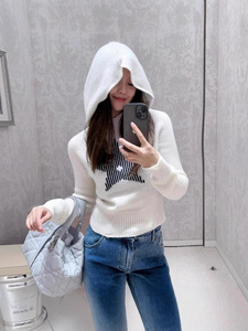 Nanyou 高級スター同風白黒縦縞ラッキースタージャガードウールカシミアフード付きセーター