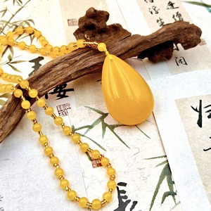 蜜蝋セーターチェーンペンダント黄色蜜蝋弥勒仏無事水滴ペンダントネックレスエスニックスタイルセーターチェーン卸売