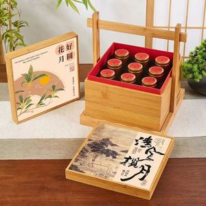 木质中秋节月饼盒双层茶叶白酒包装盒竹木伴手礼手提式糕点礼品盒