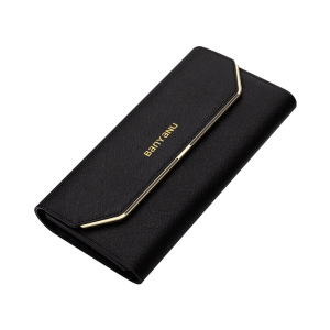 広州市の班亜奴の皮革の工場の財布の女性の長いタイプの3つ折の革はシンプルでファッション的な本革の女性のお金は薄いです。