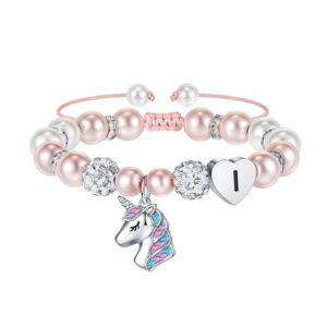 子供のパールブレスレットホワイトダイヤモンドボールパールユニコーンラブレタリングブレスレットピンクパールラブレターブレスレット