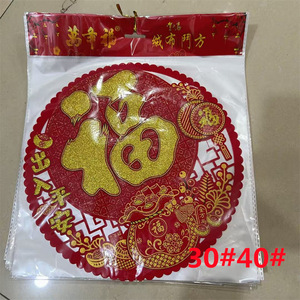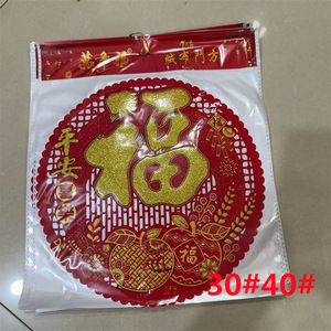 Wannianfu ラウンドベルベット祝福フル粘着中空窓装飾春祭り祝福ステッカー富と宝を引き寄せるガラスドアステッカー