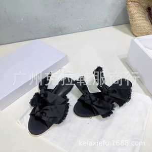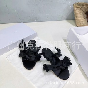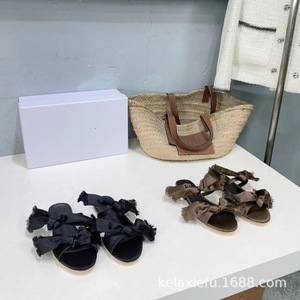 ハイバージョンニッチ2025夏本革シンプルレトロ手織りリボンフラットオープントゥサンダル