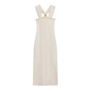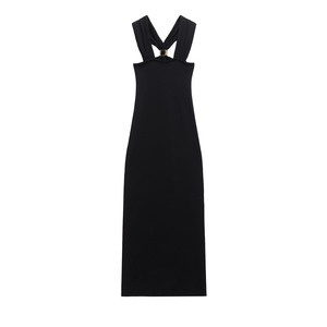 ZR 外国貿易卸売ヨーロッパとアメリカンスタイルの女性の気質スリムゴールド装飾ニットホルターネックドレス 4938118