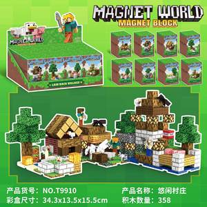 跨境亚马逊25新款MC世界摆件磁力拼插积木游戏场景minecraft拼装