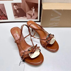 ZA 新製品 2024 夏ワンストラッププロフェッショナル女性の靴ブラウンメタル装飾ファッショナブルな人気のハイヒールサンダル女性のための
