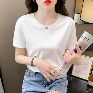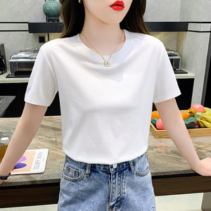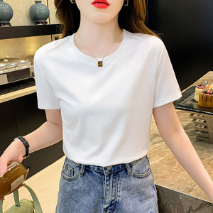 ホワイトコットン半袖Tシャツレディース2025夏新作スリムラウンドネック半袖ボトムストップ薄手