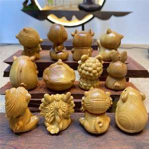 クスノキの木の干支木彫り、ネズミ、牛、虎、ウサギ、龍、ヘビ、馬、羊、猿、鶏、犬、豚の守護神、手飾り