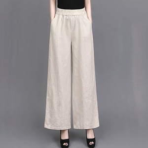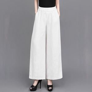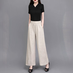 綿麻パンツ、ワイドレッグ、ゆったり、着痩せ、夏新作麻素材、肉感カバー、薄手パンツ、レディースハイウエストパンツ、カジュアルパンツ