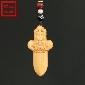 ピーチウッド Zhongkui 剣両面彫刻ジュエリーペンダントキーホルダーペンダントポータブル子供大人キーホルダー