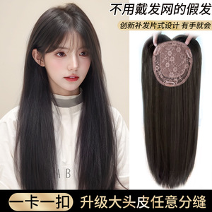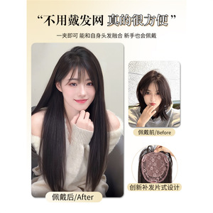 前髪を真ん中で分けた若々しいロングストレートヘア【ブラウンブラック】ヘアネット不要