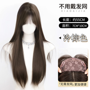 エアバング付き若々しいロングストレートヘア【コールドブラウン】ヘアネット不要