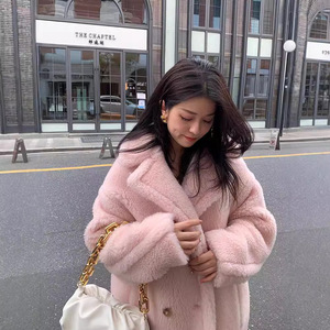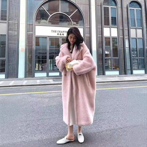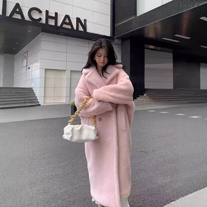 テディベアのコートの家のコートの毛皮の郭の形のラクダの毛の毛皮の一体の冬の長いタイプのコートの女性