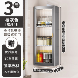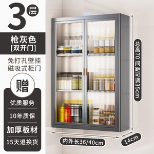 台所の穴なしの棚の壁の壁掛け式の調味料の瓶の貯蔵物は扉の防塵の多機能の壁の棚の収納棚を持ちます。
