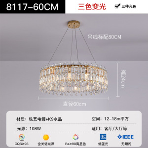 ライト高級クリスタルラウンドシャンデリアヴィラリビングルームダイニングルームリビングルームランプホテル結婚式宴会ホール LED シャンデリア