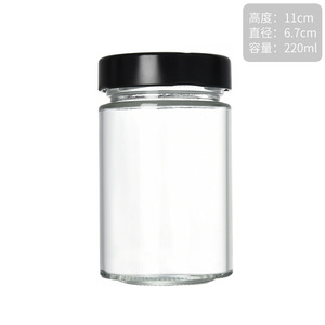 丸型高蓋透明ガラスピクルスボトルハニー黄桃缶詰ボトルシールペーストチリソースボトルジャムボトル