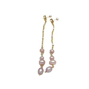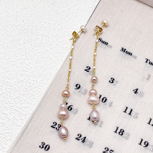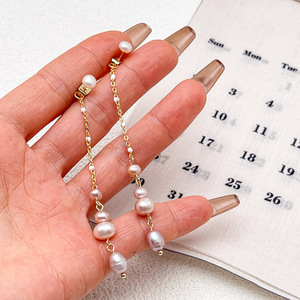 女性用のシンプルな天然パールイヤリング、淡水パールのロングタッセル、高級イヤリング、イヤリング、イヤリング