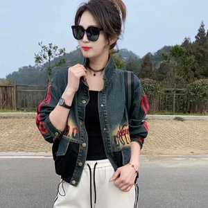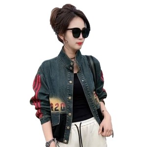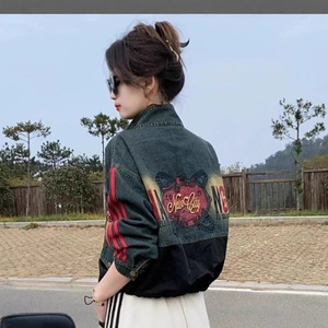 2025 新しいスタイルの小さなデニムジャケット西洋スタイル年齢軽減ショートレトロ作業着プリントジャケットトップ卸売