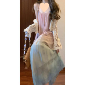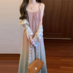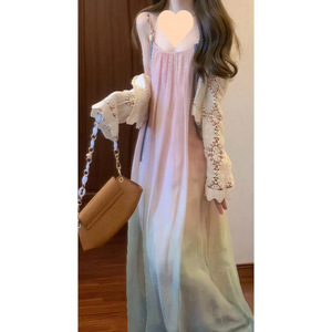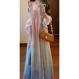 2025年初夏の服装、ニッチで衝突しないドレス、優しいスタイル、見栄えの良い、ユニークで美しいサスペンダービーチロングドレス
