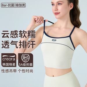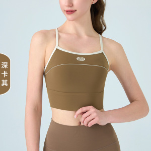 クロスボーダー春夏新作アメリカンスポーツチョッキ女性ぶつかり色細い肩ひも小さいストラップフィットネス服ブラジャースポーツ下着