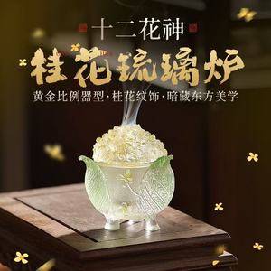 Xinyuantang ガラス十二花神ピンク蝶香炉キンモクセイ香炉香道無形文化遺産アロマテラピー炉