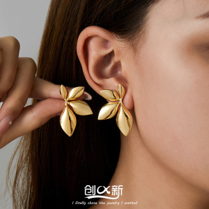 人気のクロスボーダーヨーロッパとアメリカのインスタイルのシンプルで多用途なハイエンドの金メッキステンレス鋼の花びらと葉のイヤリング、女性用