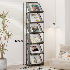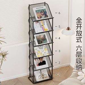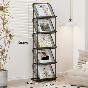 マガジンラック 床置き型新聞・書籍・パンフレット宣伝ディスプレイラック 壁掛けアイアン収納棚 情報新聞収納本棚