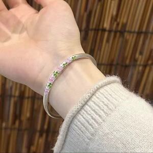 新しい純銀 999.9 古代梅の花エナメルカーリング草模様クローズドブレスレット女性のための多用途の中国風ブレスレットギフト