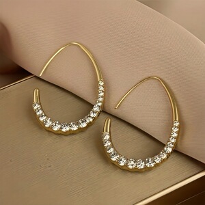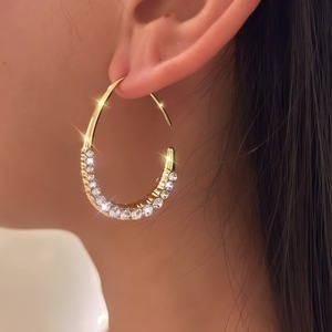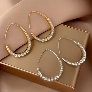 クロスボーダー楕円形イヤリングイヤーフック女性のシンプルなレトロ香港スタイルイヤリングパーソナライズされたヨーロッパとアメリカの誇張された新しいダイヤモンドがちりばめられた大きなイヤリング