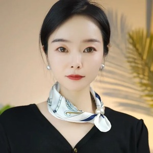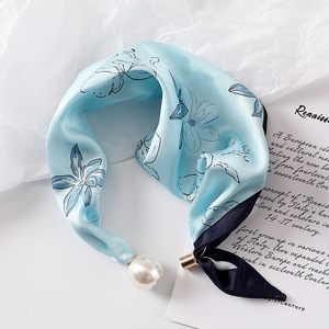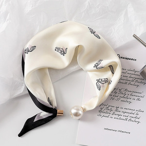 新商品の百合の小さい尾の真珠の磁気はボタンのスカーフの女性の春夏にシャツの職業を組み合わせて薄いマフラーを飾ります。