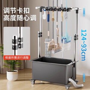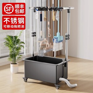 モッププールバルコニーホーム自動排水床モップ浴室クリーニングツール収納モバイルモップラック