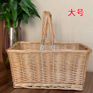 柳編み収納かご買い物かご藤編み果物かご手提げかご野菜青屋外ピクニックかご収納かご卵かご