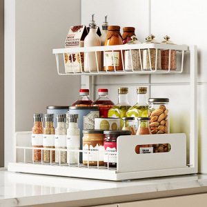 国境を越えた多機能トレイラック油塩ソース酢用品収納トレイキッチンスパイス収納ラックカウンタートップ収納ラック