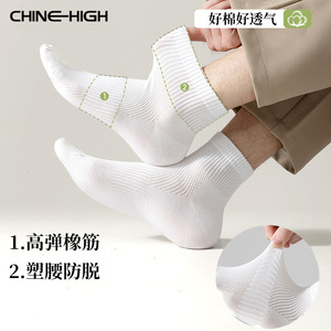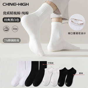 靴下男性夏綿綿通気吸汗防臭ビジネスソックス薄手白黒純色運動中筒靴下