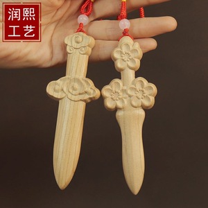 桃の木祥雲剣 桃の花剣 丸太両面彫刻 携帯ペンダント 子供用桃の木剣ペンダント