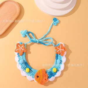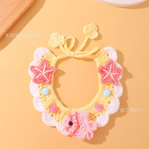 既製ニットペット用品スカーフ唾液タオルかぎ針編みかわいい猫の誕生日装飾首輪帽子セット