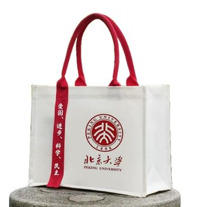 カスタマイズされた印刷可能なロゴラミネートリボン付きキャンバスバッグ、立体キャンバスバッグ、ファッショナブルなギフトバッグ、トートバッグ卸売