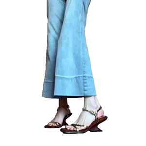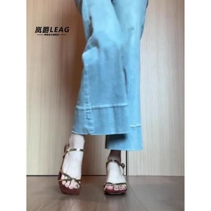 女性のためのウェッジサンダル夏 2025 新しいフレンチレトロワンラインゴールデン薄いストラップ気質特殊な形状の厚いヒールハイヒール