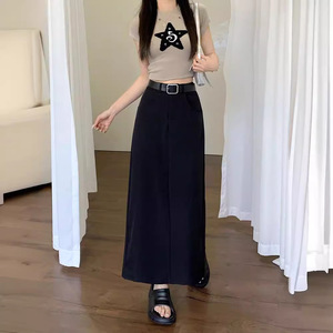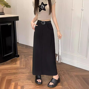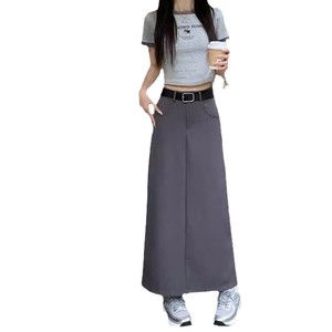 2025 春夏ハイウエスト痩身レトロスリットデザイン A ラインスカートミドル丈スカートトレンディなファットミリメートルスカート女性のための
