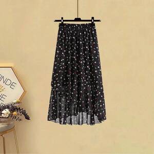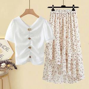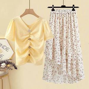 大きいサイズの婦人服200斤の太った妹の夏のスーツの女性はやせている気質のシフォンのtロングウエストのスカートの2つのセットを現します。