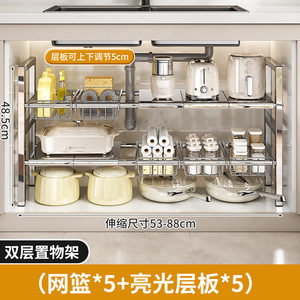 ステンレス製の格納式キッチンシンク下収納ラック、キッチンキャビネットの階層ラック、シンク下の多機能収納ポット