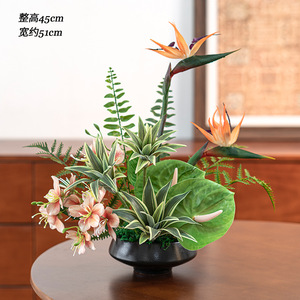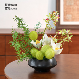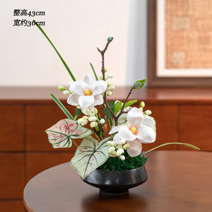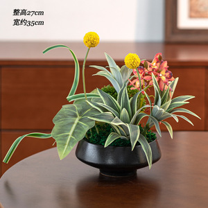 新しい中国風の造花、リビングルームの装飾フラワーアレンジメント、禅スタイルのバイオニック苔グリーン植物鉢植え装飾品