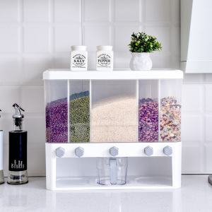 家庭用卓上分割米バケツ 防虫防湿 プッシュ式多機能5分割大容量透明穀物バケツ