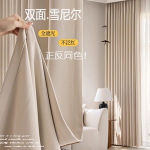 寝室カーテン全遮光2025新型シェニールクリーム風客間軽贅沢高級感厚手両面同色