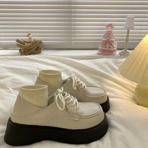 女性のための白い小さな革靴 2025 春夏英国カレッジスタイルレースアップ厚底靴ラウンドトゥ日本 jk 制服靴