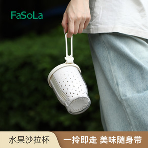 FaSoLaフルーツカップ車載ポータブル水切り付フォーク朝食カップ外付けピクニックフルーツサラダカップ