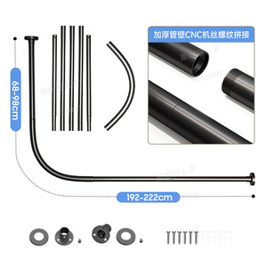 ステンレス製シャワーカーテンロッド、曲線パーティションカーテン伸縮ロッド、釘不要のL字型ロッド、バスルームロッド、パンチフリー伸縮テンションロッド