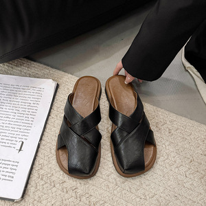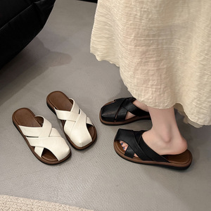 新型のフラットヘッドの半スリッパの女性は2025年の夏にファッションを着ています。
